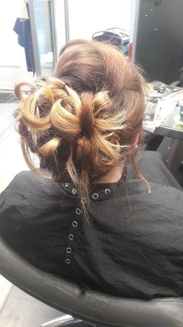 Ça y est j'ai fais mon essaie coiffure ce matin. C'est ma belle soeur qui est coiffeuse qui me feras mon chignon. Alors elle m'avais prévenu il faut beaucoup d'imagination car elle ne veut pas me les creper ni me mettre de laque maintenant pour ne...