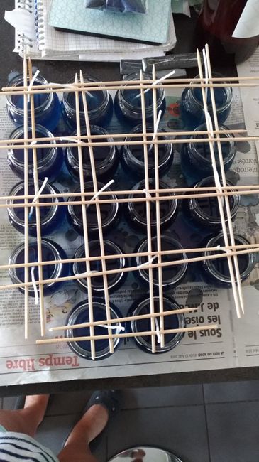 Bougie finalePlacement des méches pendant que la cire refroidie Bonjour à toute, Je voulais partager avec vous la création de mes cadeaux d'invités. Je me suis lancé dans la fabrication de bougie faite maison et je suis très contente du résultat....