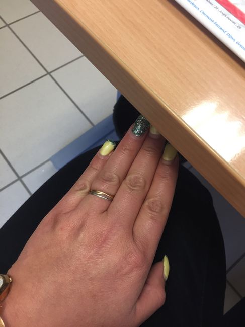 Bonjour à toutes ! J aimerais beaucoup voir vos jolies bagues. Voici la mienne, Mr l'a choisit seul et je suis plus que satisfaite !