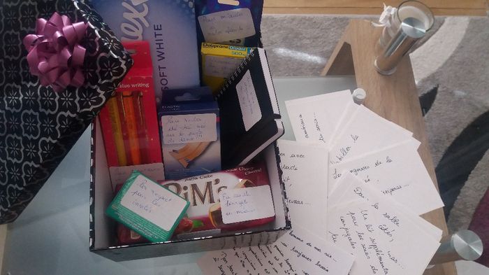 Coucou les Brides! Voilà j' Box et commandements ai décidé de demander à ma soeur d'être ma témoin. Je pense qu'elle s'en doute donc j'ai décidé de préparer une boîte spéciale car elle vient à la maison pour le weekend.J'ai fait imprimer des photos...