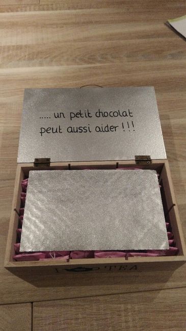 Et voilà ac mon chéri d'amour nous avons fini la petite boîte à thé qui seront distribués dans la soirée aux invites. Ils pourront soit repartir ac ainsi que leur petit lot d'autre bonbons ou le manger sans attendre au moment du café j'adore 😍 ...