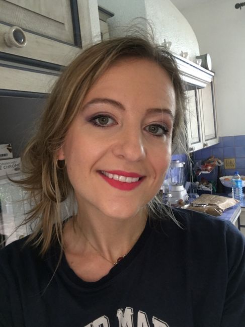 Coucou, C'est ma maman qui me maquillera le jour J. Voilà notre essai de ce dimanche matin. Suis plutôt contente, on foncera un peu moins les sourcils 😁