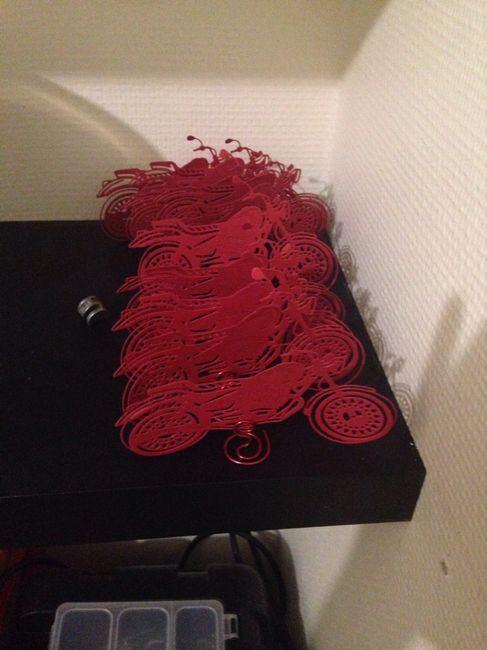 Aujourd'hui j'ai terminé les 20 motos qui seront placées sur les chemins de tables.