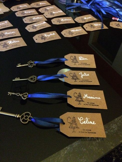 Hello , deuxième jour de préparation pour notre mariage qui aura lieu lieu dans moins de 4 mois maintenant !!! Aujourd’hui , confection des marques places: petite clé et carton sur lequel nous avons tamponné une petite référence à Alice au pays des...