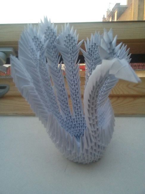 Voici le premier Paon que j'ai fais (c'est juste un test), c'est prévu d'en faire en couleur et avec du papier métallisé pour la couleur spéciale du Paon : )Merci à la personne qui as publié cette idée sur le forum avec un Cygne. Moi qui adore les...