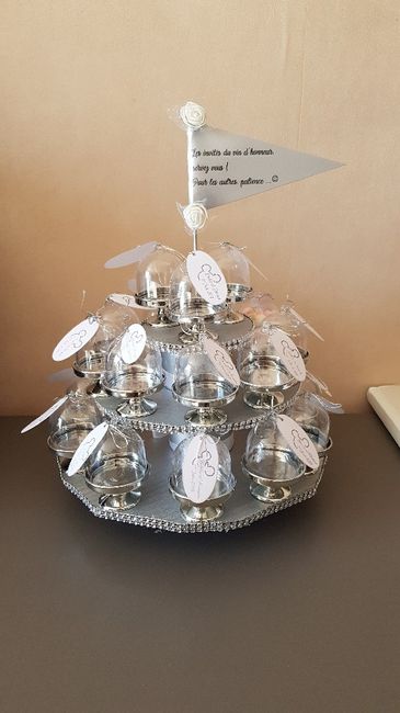 Coucou, Je me tourne vers vous pour des idées, alors j'ai créé ce présentoir pour mettre les bonbons pour les invités du vh uniquement. Je vais mettre un fanion au milieu le spécifiant mais que marquer ?