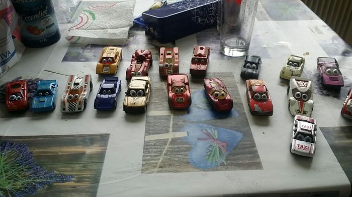 Coucou à tousComme le titre le dis j'ai fait à ma façons des petites voitures pour que sa ressemble un peu à cars , car notre thème est disney et que la table enfants sera la table cars.Bonne journée à tous ^^
