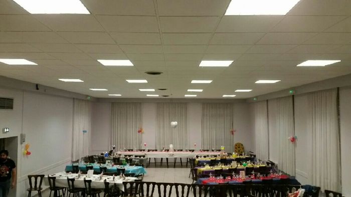 C'est avec les larmes au yeux que sa y est je me mari demain.Voilà les photo de la salle sur le thème disney Nous avons mis une barrière de chaise pour séparer vin d'honneur et repas.Bonne soirée à toute la mienne sera courte.