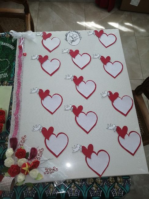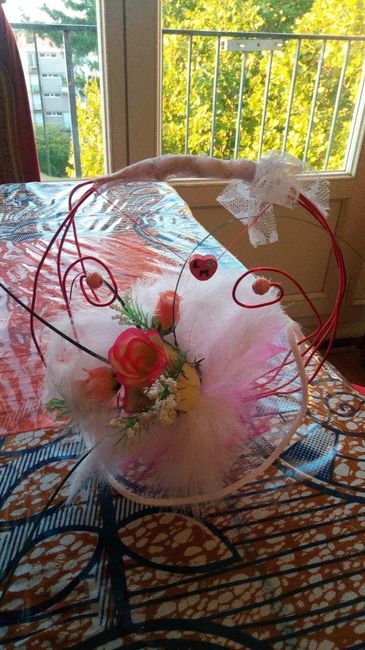 Voila mon porte alliance et fait . Jai mis 3heures lol mais je suis contente donc l alliance seras pendu chaqune dans la boucle du coeur que jai essayer de faire et je pense rajouter le OUI en fil de fer