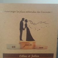 Il y a 3096 joursVoici le texte de notre faire-part. Il me manque la fin qu'il faut que je rajoute pour les invités qui reste au repasDonner moi vos idées. Julien c'est enfin décidé de demander Myriam en mariage ! Venez partager avec eux le match de leur vie le 25...