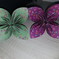 N'etant pas du tout manuelle j'ai quand meme voulu essayer de faire cette fleur ! Je n ai pas trouvé de papier uni mais comme c etait pour un test j ai pris ce que je trouvais ! Je suis assez contente...
