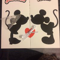 Voilà notre faire part thème Disney 😊❤️ Premiere photo le devant deuxième c’est quand on ouvre et la dernière c’est le derrière qui est un peu abîmé car je me suis assises dessus sans faire expres 😂...