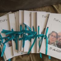 J’ai ENFIN finit mes livrets de messe !!! Pioufff !! C’est du boulot !! Et j’ai fait des petites fleurs qui me serviront à decorer mes tables. A 24 jours, on fignole les derniers détails 🙂