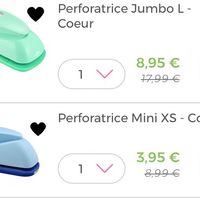 Bonjour bonjour Un petit message pour vous prévenir que sur bebeboutik, y'a une vente privée de perforatrices cœur ❤️. Y en a même une embosseuse. La + petite fait un cœur de 1,5 cm ; la + grande de 7...