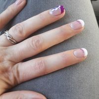 Voici mes 3 essaies manucure pour le mariage. j hesite entre le 2e sans le violet ou le 3e....