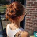 Et voilà chignon et make-up valider moins d'une heure et demi de préparation pour les deux j'ai une coiffeuse au top qu'en pensez-vous? Chignon effet rock n' roll Désolé pour les photos mais le soleil...