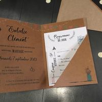 Voici en avant première nos faire parts... Il reste à fermer avec la date en fanions accroché avec ruban de dentelle. Vous trouvez ça comment ? C'est ma cousine infographiste qui les faits. On les...