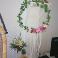 Soyez indulgente j ai pas fini.... Sur les tables ateliers de traiteur il y aura des cadres avec un attrape reve au milieu.... Des petites fleurs et des photophores