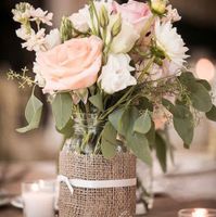 Voilà les petits pots que je souhaite mettre sur la table..composés d hortensias séchés, blé et roses...0 euros ☺.qu en pensez vous ?