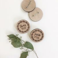 Coucoooouk ☺️ Et voilà, les badges pour nos témoins, GH et DH sont commandés 😍😍 en bois pour les hommes et les broches pour mes deux DH d’amour ❤️