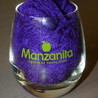 Trop contente, un ami a mon papa qui m'a donné 70 verres a manzana. Super!!!! Je vais l'en servir pour la déco des tables.