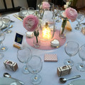 Re coucou Hier soir nous en avons également profité pour faire un deuxième essai pour nos tables. On a pas mis les Dragées partout, ni les serviettes, on doit modifier la grandeur de la bouteille au...
