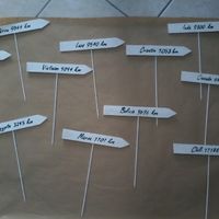 Je viens de finir mes petits panneaux nom de table (thÚme voyage) qui seront piqués avec les fleurs dans les centres de table. Qu'en pensez vous ?