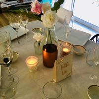 Petits essais d aujourd’hui bon il y aura des modifs le jour j là c’est nappe en papier fleurs en filtres et le couvert n est pas complet mais voilà l’idee