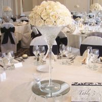 On a trouver 😍 Coup de coeur de Monsieur en plus 😊 Centre de table vase martini 70cm avec roses blanches, billes d’eau transparente et led pour un rendu rouge comme notre thème. Mon papa commence déjà...
