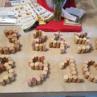 Voilà encore une bonne chose de faite!Beaucoup de bouchons (donc beaucoup de vin de consommé 😉) , beaucoup de glu et surtout, surtout de la patiente. ..Ils décoreront le bar de la terasse à vin...