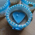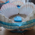 Centre de table en coquilles St Jacques patiemment conservé par mes soins avec au milieu du sable, la bougie. Et petit bougeoir de table...