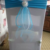 Je tenais à mettre des housses de chaises, c'est plus sympa, après avoir réfléchi avec nos couleurs, voici notre déco, il n'y en n'a plus que 64 à faire...