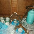Bonjour à tous, voici un aperçu de ce que j'ai réalisé jusqu'ici... Ma déco de table, notre livre porte alliances pas tout à fait fini, les bougies qu'on disposera sur les tables avec l'urne et...