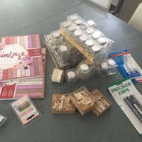 J adore Action !! Petit saut ce matin et j ai tous mes pots à dragées , mes papiers pour faire mes bourses carreaux , mes épingles en bois pour le plan de table et d autres choses ( dentelle , scotch...