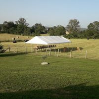 Et voilà à J-2, on s intalle pour la cérémonie Laïque et le Vin d honneur. Le chapiteau était monté depuis lundi, mais mardi matin le vent nous l a retourné...donc hier au soir nous avons remis...
