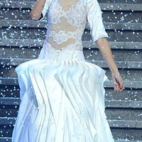 Bonjour !!! Aujourd'hui c'est TAYLOR SWIFT qui fait la une avec une robe de mariée portée lors de son intervention mercredi 20 février aux Brit Awards 2013 à Londres... Impossible de trouver la marque...