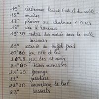 Bonjour a toutes 😁 Je suis en train de coucher sur papier le déroulé de notre soirée. A savoir que cest mon frère DJ qui nous fait la soirée donc je dois me faire mon propre déroulé. A savoir...