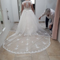 Et voilà ce matin c était retrouvaille avec ma robe pour les premiÚre retouche. J ai été impressionnée qu elle coupe le tulle en direct. Du coup deux heures à rester debout à pas bouger c est dur...