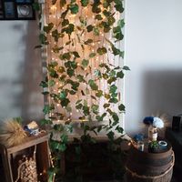 Bonjour les filles voici ma deco de photobooth pour 10€ que de la récupération a par les feuilles en plastique que j ai u sur internet