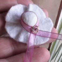 Bonjour les brides! Aujourd'hui,je voudrais avoir votre avi. Ma maman me fais des boutonnieres pour les invités... Voici ce qu'elle vien de me concocter : C'est un chapeau blanc,le ruban sera parme et...