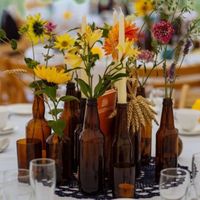 Je ne comptais pas acheter de fleurs fraîches pour la déco de la salle de réception mais une inspiration sur Pinterest m’a charmé