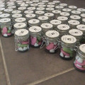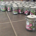 Bonjour à toutes! Je viens de terminer les dragées pour le jour j! Dans chaque contenant, j'ai mis : 4 dragées rose au chocolat noir, 3 dragées vert au caramel beurre salé et 6 petits coeurs blanc au...