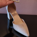 Hello, cette semaine, j'ai reçu ma 2ème paire de chaussures ! Elles sont prévues au cas où j'aurai mal aux pieds avec les premières ! 🩹 J'ai gardé la hauteur des talons comme ma robe a été retouchée...