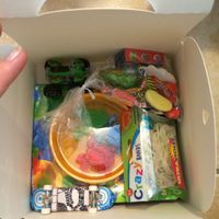 Bonjour ! je voulais partager mon idée avec vous j'ai acheter des boites à patisseries que j'ai garni d'un sachet bonbon et de quelques jouets. j'ai 23 enfants et au total j'en ai eu pour une centaine...