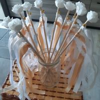 Bonjour à tous et toutes!!! Juste un petit partage du début de ma création de bâtons de mariage pour notre cérémonie laïque 💒 J'en ai déjà fait 10 reste encore 68 😅😅Mais j'aime tellement créer moi...
