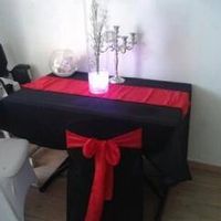 Bonjour, nous sortons de Locadeco et nous avons flashé pour une table noire avec chemin de table rouge et chaises assorties...Sachant que notre theme est le cinema sa tombé bien ! Qu'en pensez-vous???...