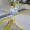Voilà je viens de terminer mes escortes cards, petite carte pour indiquer aux convives leur table. A cela j'y ai ajouté une pochette a laquelle j'ai accroché le cadeau des invités des badges...