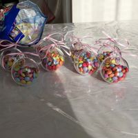 Je me suis dit que les dragées pour enfant pas terrible alors j'ai fait des bulles smarties , je pense qu'il seront content de voir ça a leur place