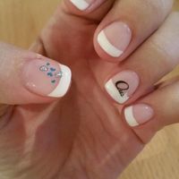 Voilà ma.manucure du jour J normalement. Qu'en pensez vous? Les petits coeurs bleus c'est parce que le bleu est une de nos couleurs de mariage et que le surnom de mon chéri c'est mon coeur. Clin...