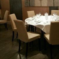 Je vous présente la salle de restaurant, les chaises sont beiges et le nappage blanc. Notre décoration se décline en blanc, argent et rouge carmin très soutenu (ni rouge coquelicot, ni rouge...